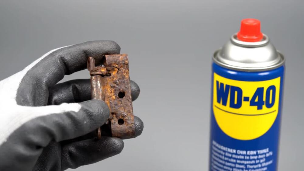 I sprayed WD-40 generously onto the rusty door hinge, making sure to cover all the rusted spots and crevices. After letting it sit for a few minutes, I moved the hinge back and forth to loosen the rust. Finally, I wiped away the dissolved rust with a clean cloth, leaving my hinge rust-free and working smoothly.